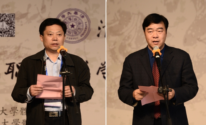 从左至右:清华大学历史系教授彭林先生、嘉礼堂主人张颂仁先生、中国射箭协会教练委员会主任徐开才先生致辞。
