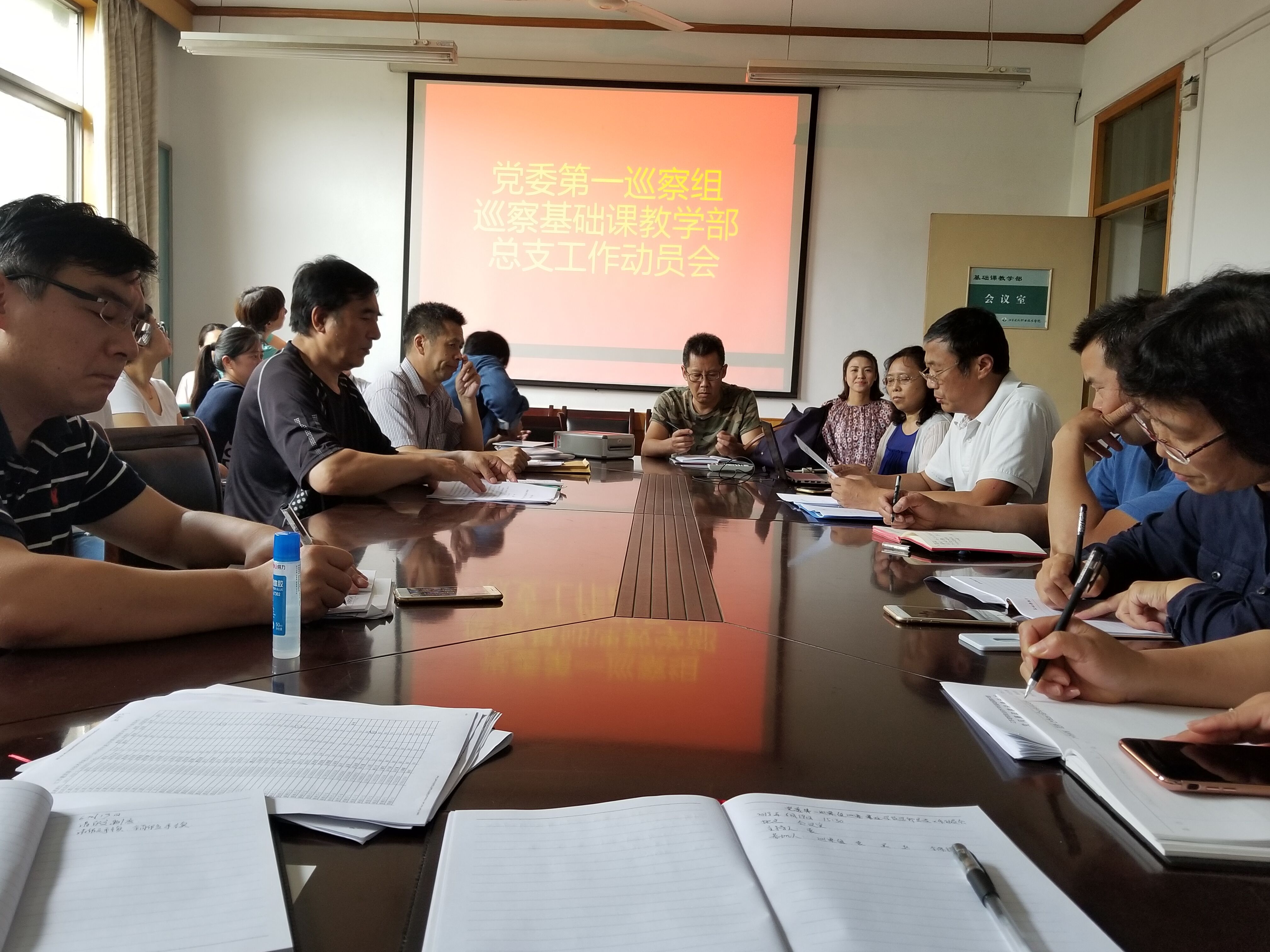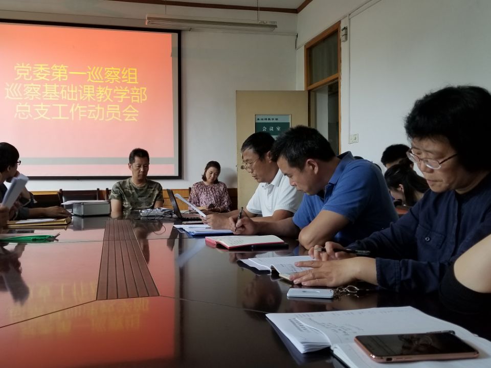 6月19日下午,党委第一巡察组召开动员会。巡察组组长白海云就即将开展的巡察工作作动员讲话,总支书记袁德明主持会议,并代表基础课教学部总支就贯彻落实巡察组要求、配合做好巡察工作作了表态发言。党委第一巡察组副组长汪玉静及巡察组全体成员,基础课教学部总支班子成员,基础部全体教职工参加会议。