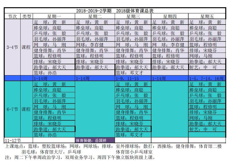 2018-2019-2学期体育课总表