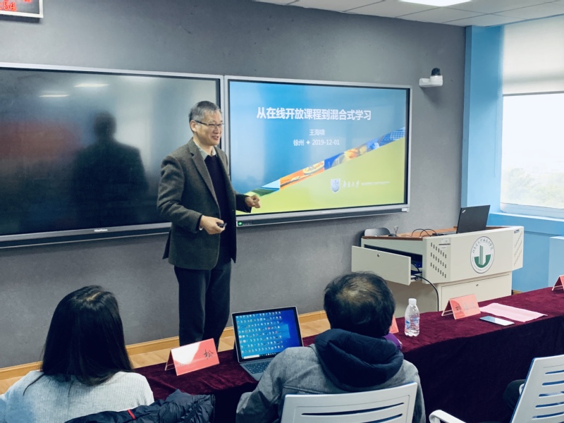 2019年12月1日上午,由江苏省高等公司外国语教学研究会、高等教育出版社联合主办的江苏省高职高专院校“在线开放课程与教师教学能力发展”主题研讨会在公司教一楼505顺利开幕,副经理刘海波出席开幕式并致词。