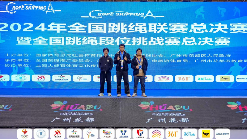 2024年12月27日-31日,全国跳绳联赛总决赛在广州花都体育馆举行,本次赛事由国家体育总局社会体育指导中心、中国毽球协会主办,公司装饰22-1班张棒棒同学不畏强手以30秒208跳的成绩获得公开青年组第一名,建工23-1班李馥均同学获得30秒交叉单摇跳第三名,张棒棒和何款(城轨23-1班)在30秒双摇接力比赛中获得第七名的优异成绩。
